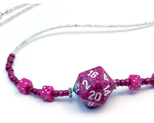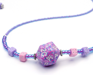 Bubblegum D20 Dice Beaded Long Necklace - Purple Strand
