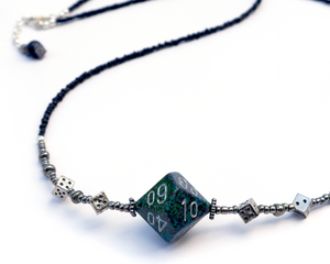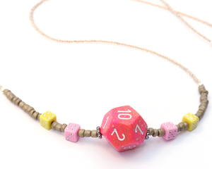 Black Silver and Pink D12 Dice Beaded Long Necklace
