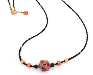 Black Pink and Orange D20 Dice Beaded Long Necklace