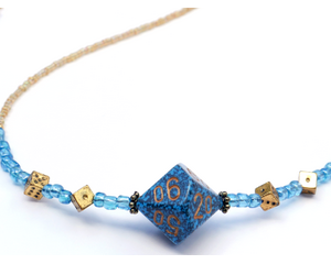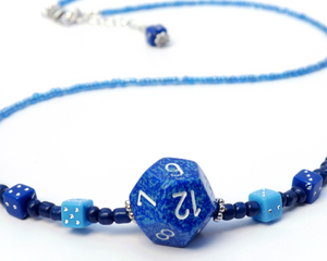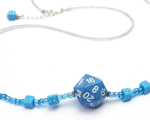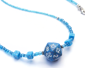 Blue D20 Dice Beaded Long Necklace - Blue Strand