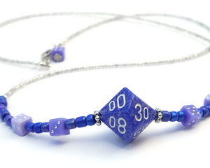 White Blue and Purple D20 Dice Beaded Long Necklace